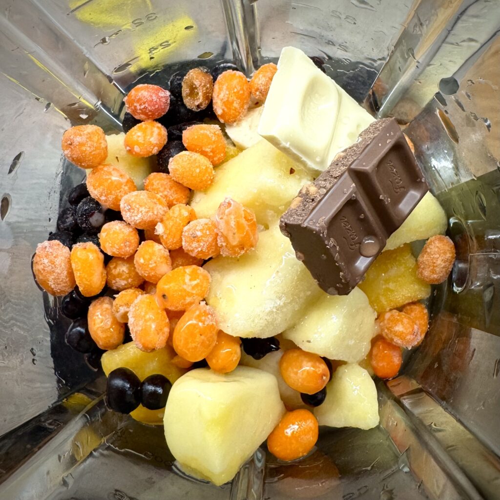 1. Lisää ainesosat tehosekoittimeen ja soseuta